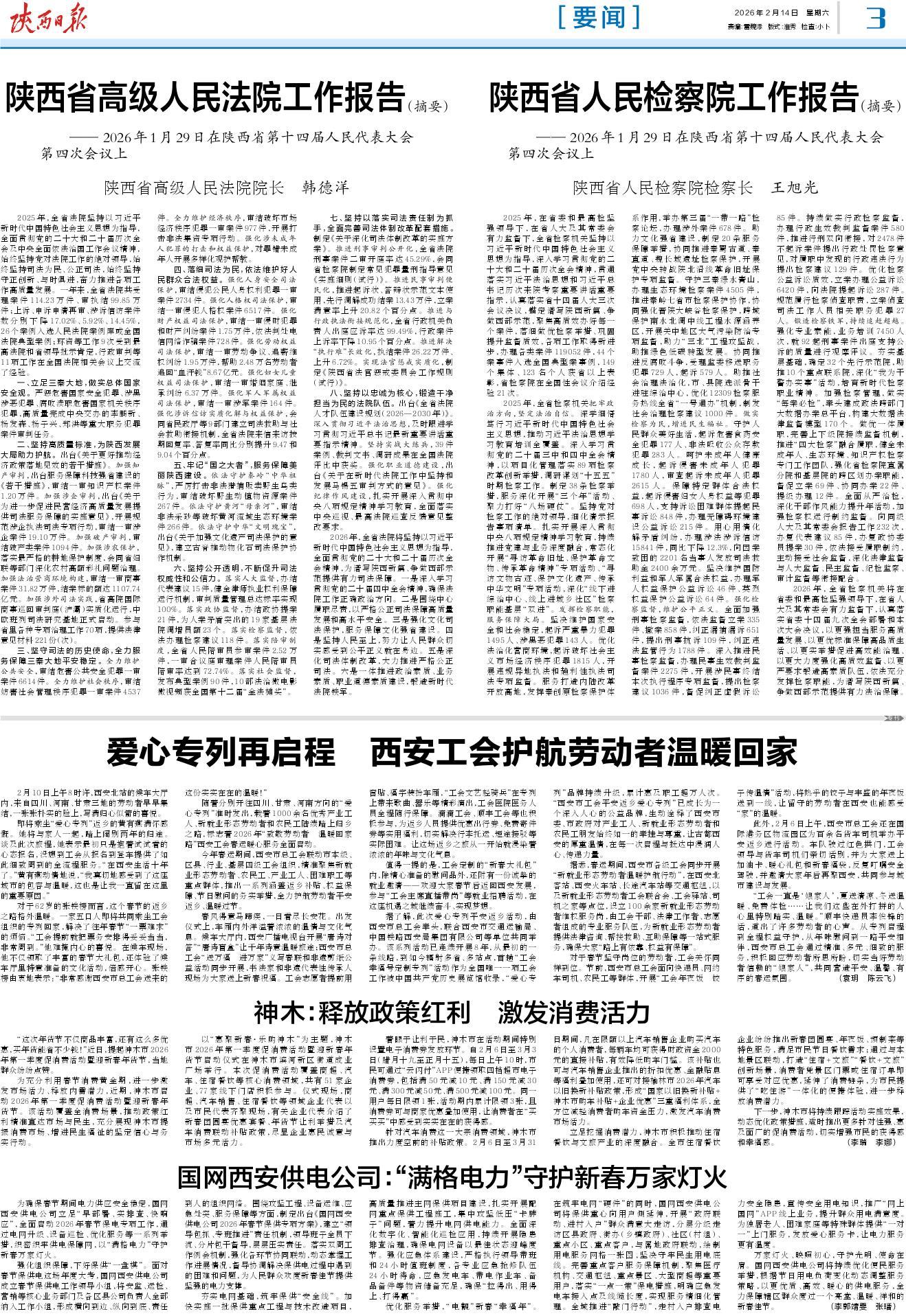 2026年,全省检察机关将在省委和最高检坚强领导下,在省人大及其常委会有力监督下,认真落实省委十四届九次全会部署和本次大会决议,以更强担当服务高质量发展、以更优标准保障高品质生活、以更实举措促进高效能治理、以更大力度强化高质效监督、以更严要求锻造高素质队伍,依法充分发挥检察职能,为谱写陕西新篇、争做西部示范提供有力法治保障。