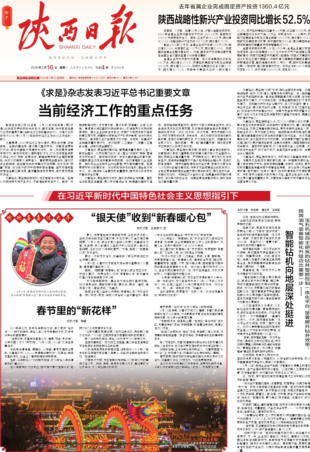 2月5日,在商洛市商州区三岔河镇七星村,老人收到“新春暖心包”,脸上洋溢着幸福的笑容。