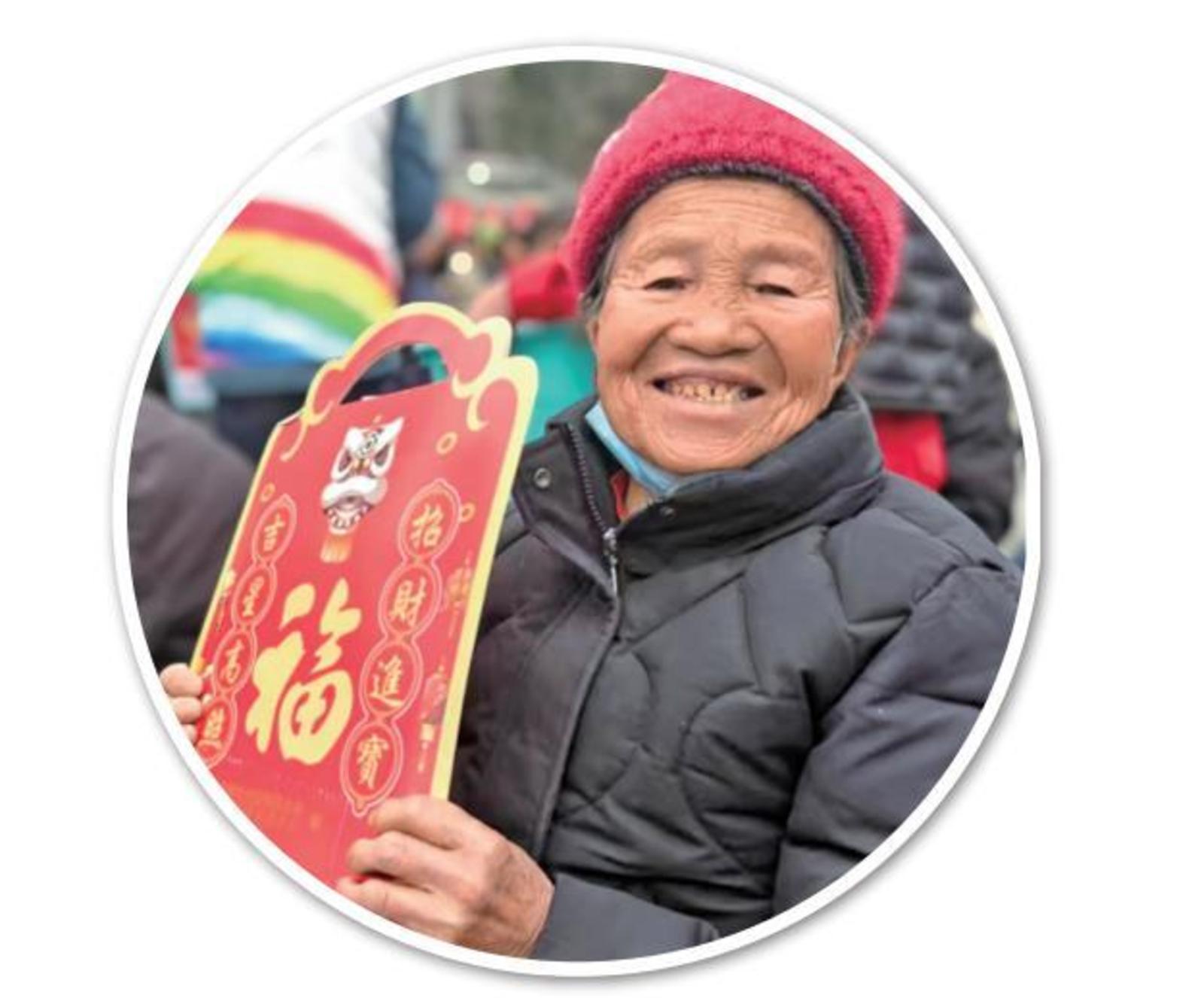 在七星村的“新春暖心包”发放现场,志愿者把“新春暖心包”交给老人时,他们笑得合不拢嘴。