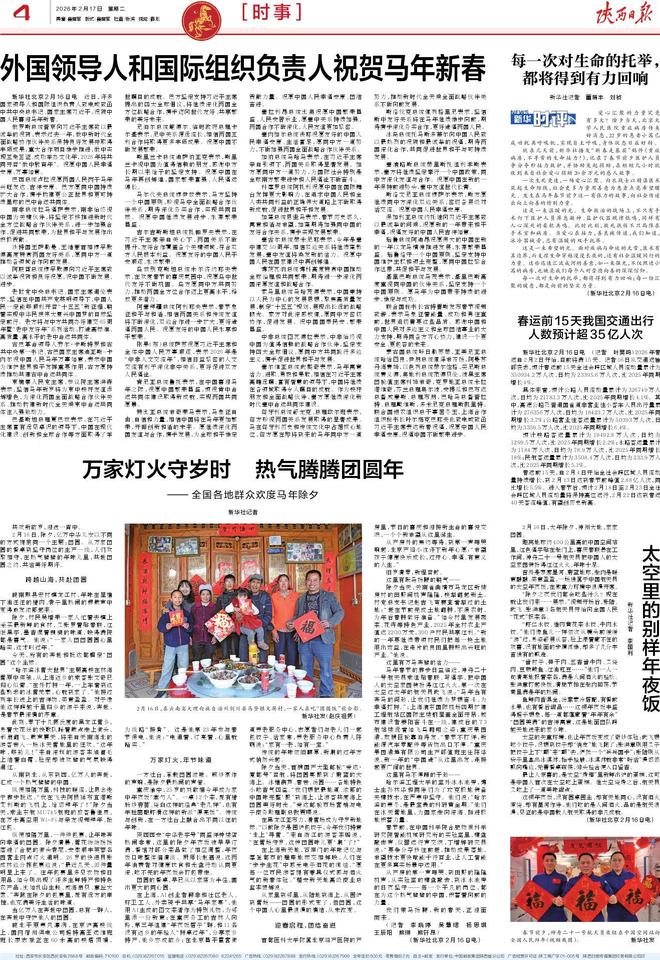 2月16日,除夕,亿万中华儿女以不同的方式拥抱同一个主题:团圆。从万家团圆的餐桌到坚守岗位的生产一线,人们欢聚相守,在热气腾腾的年味儿里,共赴团圆之约,共话美好期许。