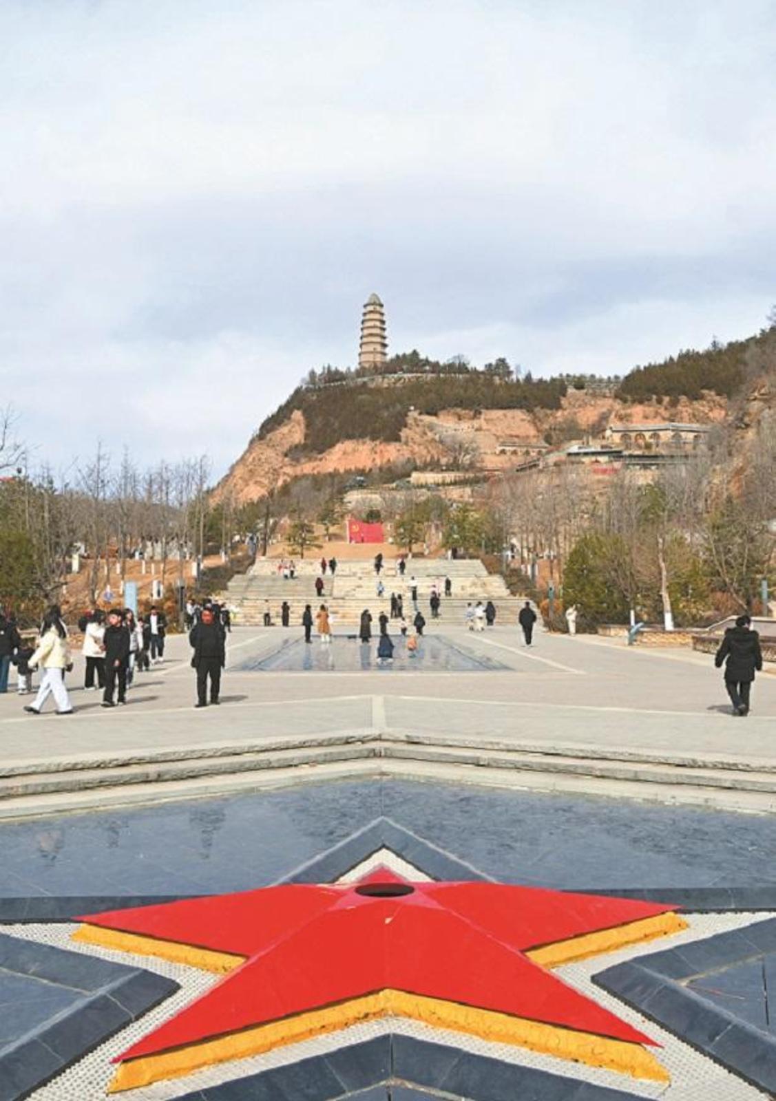 2月18日,延安宝塔山景区游客络绎不绝。 本报通讯员 王德荣摄