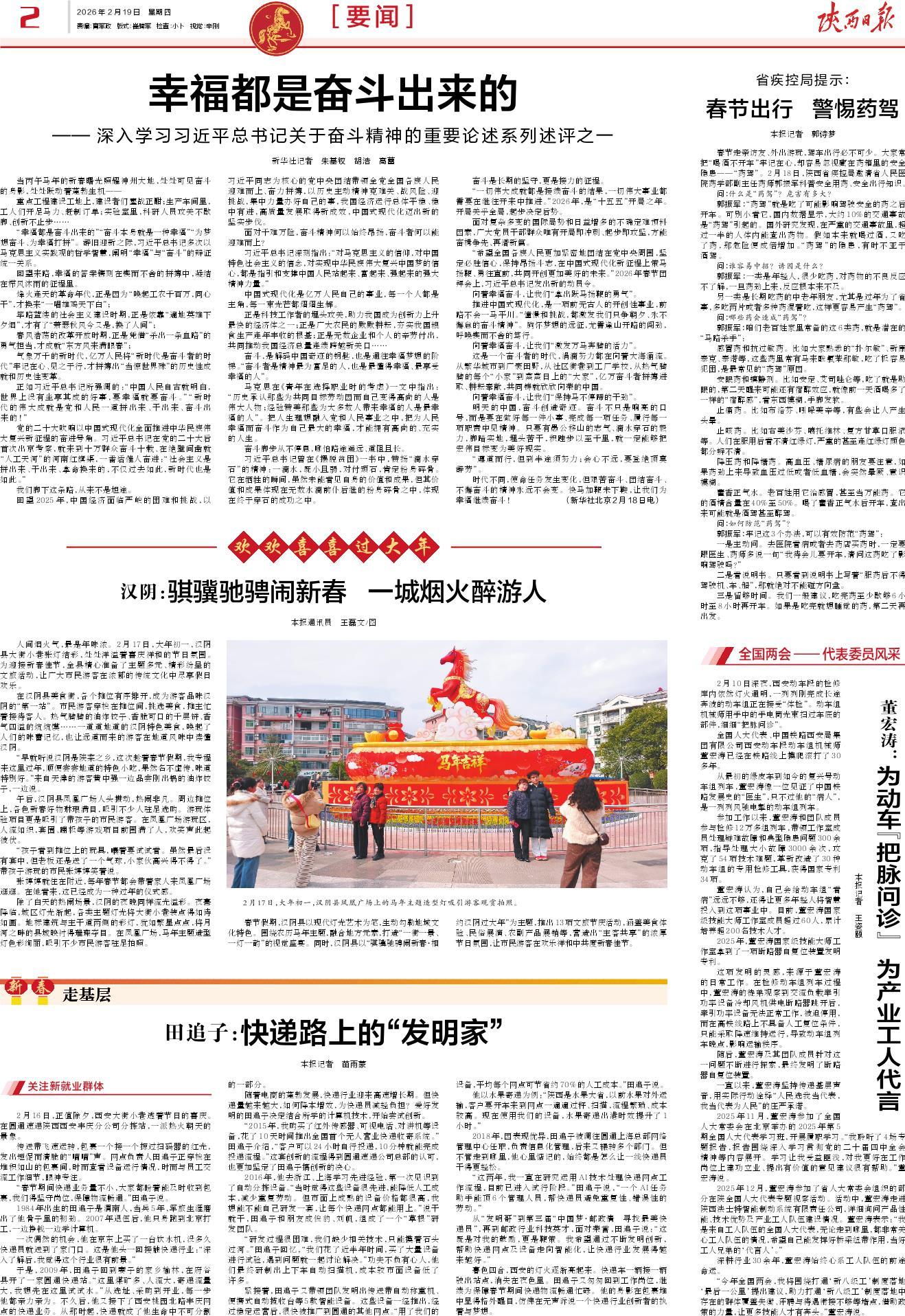 “希望全国各族人民更加紧密地团结在党中央周围,坚定必胜信心,保持昂扬斗志,在中国式现代化新征程上策马扬鞭、勇往直前,共同开创更加美好的未来。”2026年春节团拜会上,习近平总书记发出新的动员令。