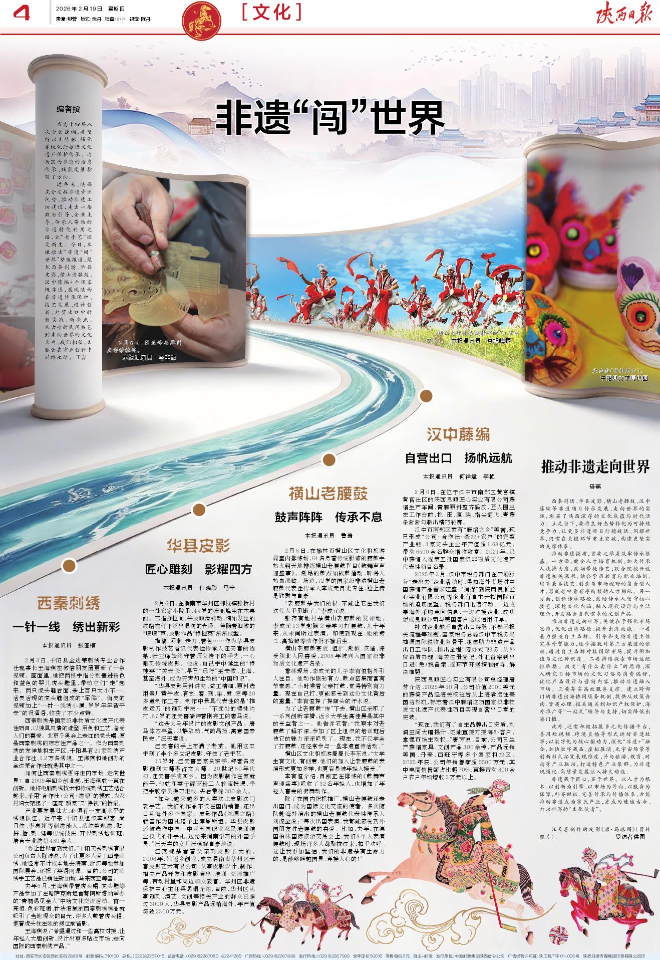 “要让世界看到我们。”千阳天秀刺绣有限公司负责人陈波说,为了让更多人爱上西秦刺绣,她经常不计成本地去海南、浙江等地参加国际展会,还报了英语网课。目前,公司的刺绣手工艺品已销往新加坡、马来西亚等国。