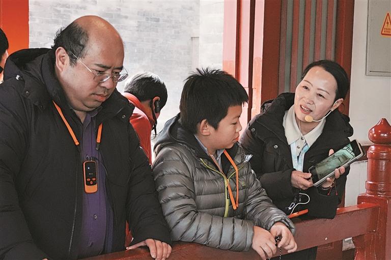 讲解中,马妩的专业精神藏在每一个细节里:提醒老人注意脚下台阶、为孩子讲解文物背后的趣事、主动帮游客拍照留念……一言一行温暖着远道而来的客人。