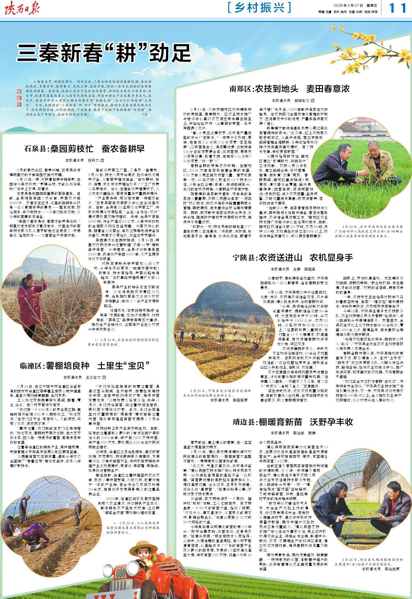 石泉县是中国西部重要的蚕桑基地。目前,全县拥有桑园7万余亩,养蚕农户超8000户。尽管还在正月,这里的田间地头已是一派人勤春来早的景象——整地施肥、防治病虫、学习新技术……乡亲们抢抓农时,为今年的蚕事做足准备。