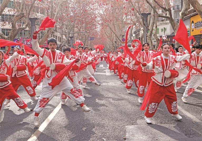 2月27日,安康市举行社火巡游。20余支队伍的千余名表演者通过舞龙舞狮、汉调二黄等特色民俗各展绝活,为游客带来一场文化盛宴。图为腰鼓表演现场。 本报记者 董剑南摄