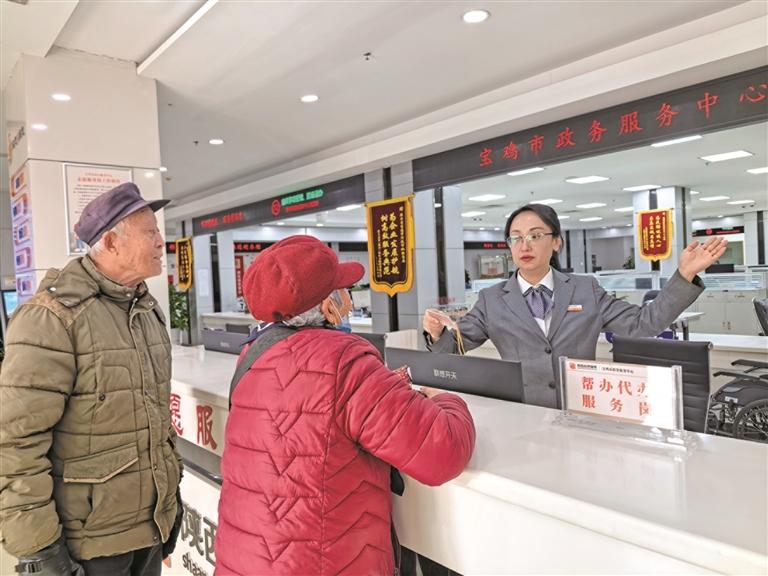 二月二十七日,在宝鸡市政务服务中心,工作人员为前来办理业务的群众提供帮办代办服务。