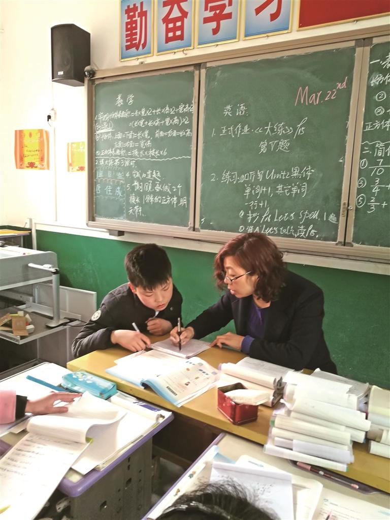 在杨寨小学时,赵丽萍遇到了一个名叫小东的男孩。不交作业、与同学打架、上学迟到……同事给赵丽萍打了“预防针”:这孩子特别“难缠”。赵丽萍没有着急,不动声色地观察。一个星期过后,她主动把小东叫到跟前:“今天的作业会不会做?”小东摇摇头。没有批评,没有说教,赵丽萍把他拉到身边,把题讲了两遍,然后看着他写。