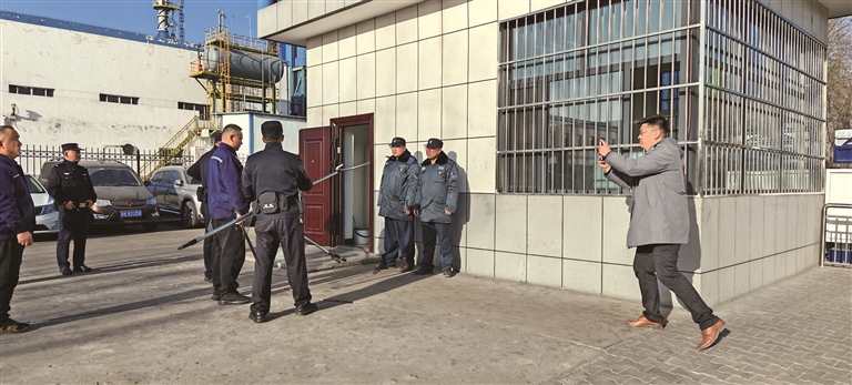 2月12日,本报记者霍海澎(右一)在陕煤神木天元化工有限公司采访(资料照片)。 本报通讯员 白空军摄
