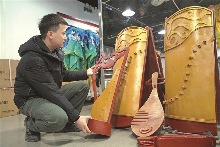 3月1日,道具师王喜在查看演出道具。