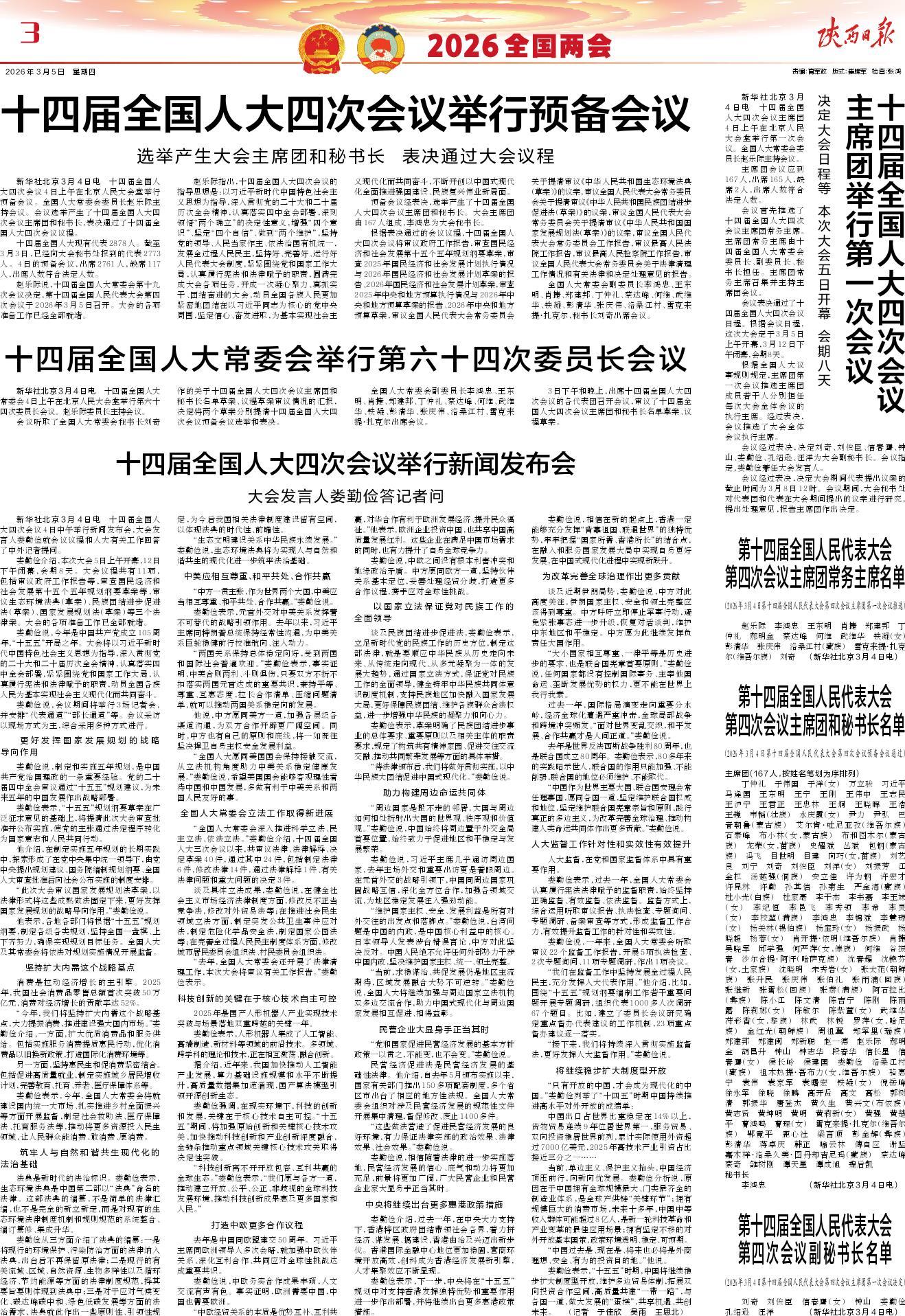 (2026年3月4日第十四届全国人民代表大会第四次会议主席团第一次会议决定)
