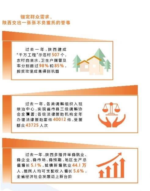 过去一年,陕西建成“千万工程”示范村507个,农村自来水、卫生户厕普及率分别超过98%和85%,脱贫攻坚成果得到巩固。广大乡村正向着产业兴旺、生态宜居、乡风文明、治理有效、生活富裕的方向发展。