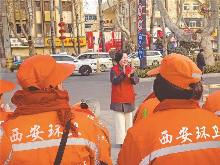 2月7日,赵冰带领志愿者为30名环卫工人送上包含口罩、手套、围巾、油茶、洗衣液等物资的温暖礼包。这已是她持续13年慰问环卫工人。慰问结束后,志愿者兵分两路开展“擦亮城市”志愿服务。4个多小时的辛勤劳动,让人民路、胜利路的环境面貌焕然一新。“每一份温暖都能汇聚成城市文明的暖流,我们希望让志愿精神融入城市血脉,让阎良成为一座有温度、有情怀的城市。”赵冰说。