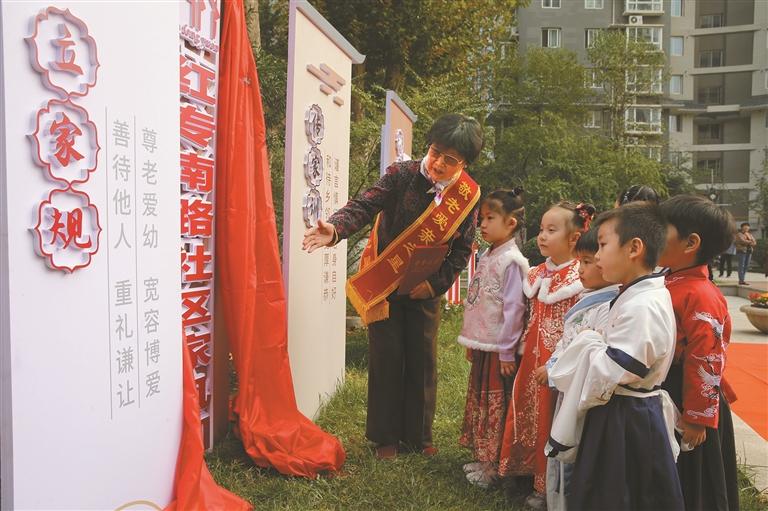 在红专南路社区的社会主义核心价值观主题广场,“厚德、孝悌、爱家、惜福”的字样格外醒目。近年来,红专南路社区坚持以文化铸魂、以德治润心,持续开展传家训、重家教、树家风、立家规系列主题活动,评选“和谐家庭”“好媳妇”“好公婆”等先进典型,建成全省首家慈善家风园,营造出和谐诚信、守望相助的浓厚社区氛围。