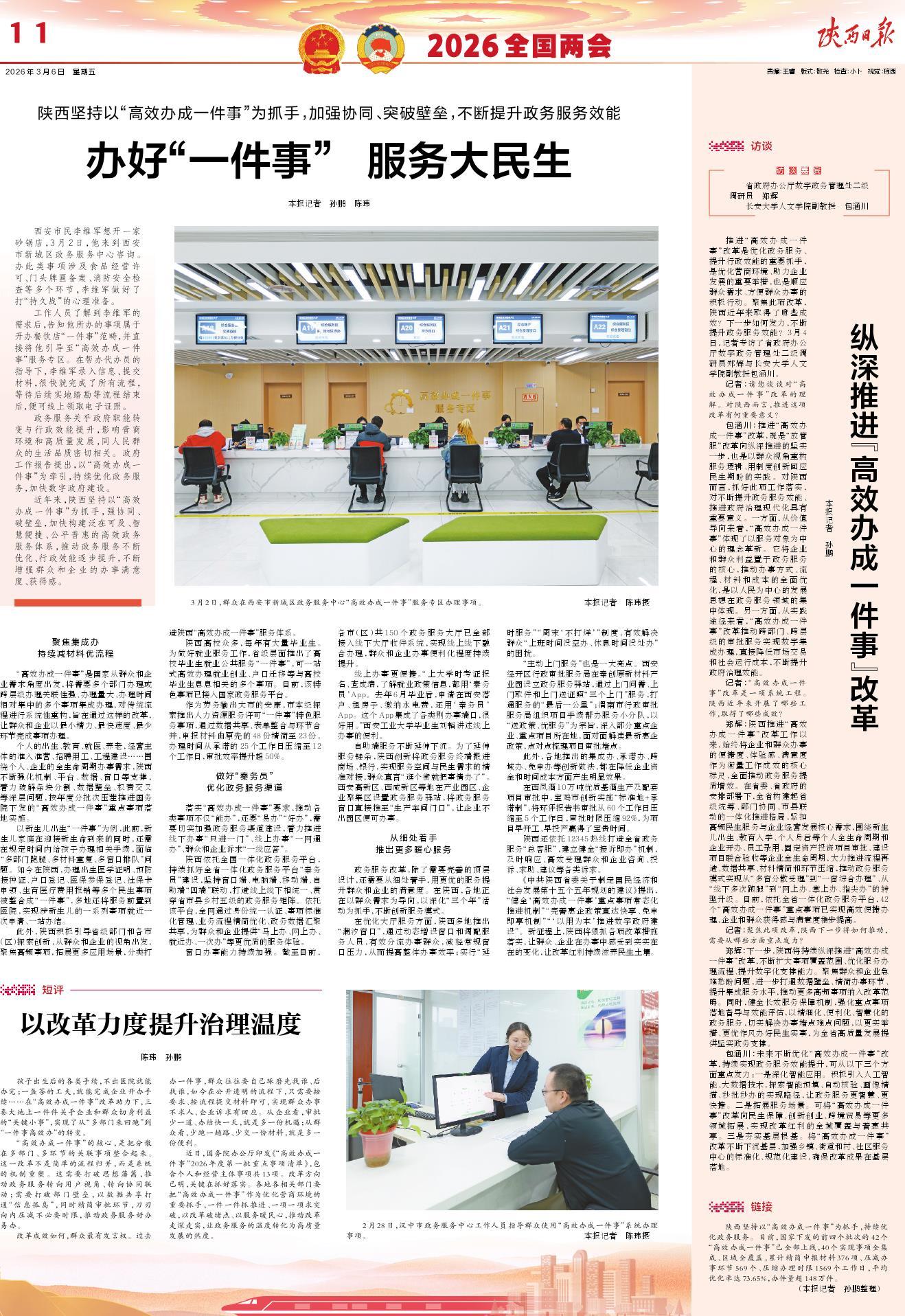 近年来,陕西坚持以“高效办成一件事”为抓手,强协同、破壁垒,加快构建泛在可及、智慧便捷、公平普惠的高效政务服务体系,推动政务服务不断优化、行政效能逐步提升,不断增强群众和企业的办事满意度、获得感。