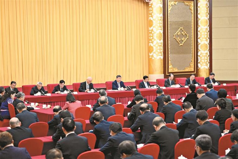 中共中央政治局常委、全国政协主席王沪宁,中共中央政治局常委、中央办公厅主任蔡奇参加看望和讨论。