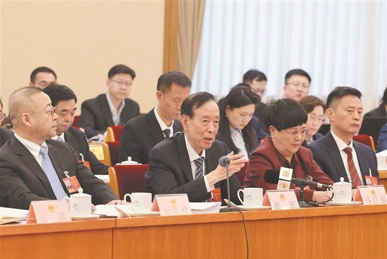 3月5日下午,十四届全国人大四次会议陕西代表团举行全体会议。代表们踊跃发言,认真审议政府工作报告。 本报记者 母家亮摄
