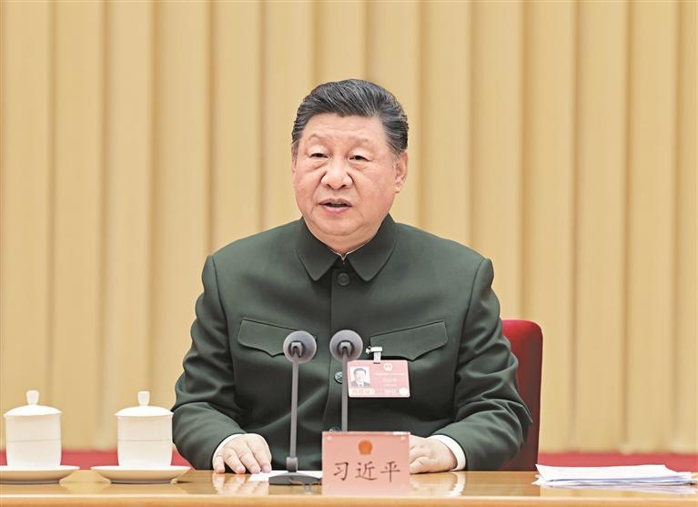 新华社北京3月7日电 (记者 梅常伟)中共中央总书记、国家主席、中央军委主席习近平7日下午在出席十四届全国人大四次会议解放军和武警部队代表团全体会议时强调,“十五五”时期要如期实现建军一百年奋斗目标、高质量推进国防和军队现代化,必须坚持好、运用好、发展好政治建军这个重要法宝,毫不动摇坚持和加强党对军队绝对领导,充分发挥政治建军特有优势,凝心聚力推动国防和军队现代化行稳致远。