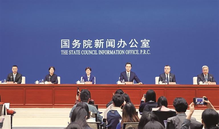 3月7日,国务院新闻办公室举行吹风会,国家发展改革委副主任郑备、国家发展改革委秘书长袁达、国家发展改革委发展战略和规划司司长陈雷、国家发展改革委创新和高技术发展司司长白京羽、国家发展改革委社会发展司司长刘德春解读“十五五”规划《纲要(草案)》,并答记者问。 新华社记者 潘旭摄