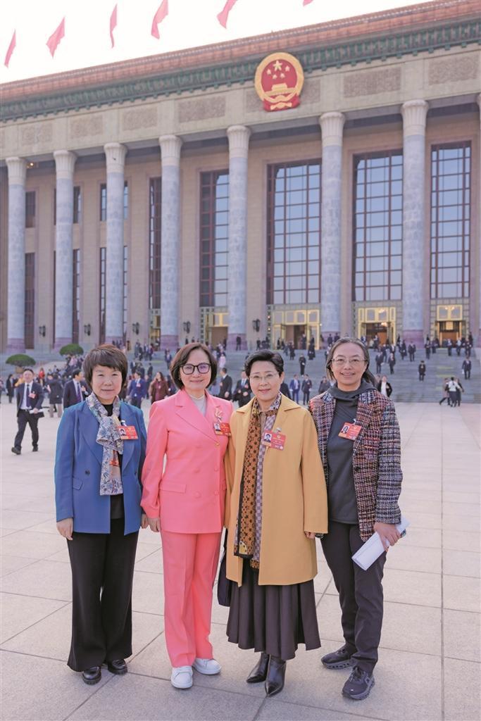 3月8日是国际妇女节,参加全国政协十四届四次会议第三次全体会议的部分住陕全国政协委员在人民大会堂前合影留念。 本报记者 陈玮摄
