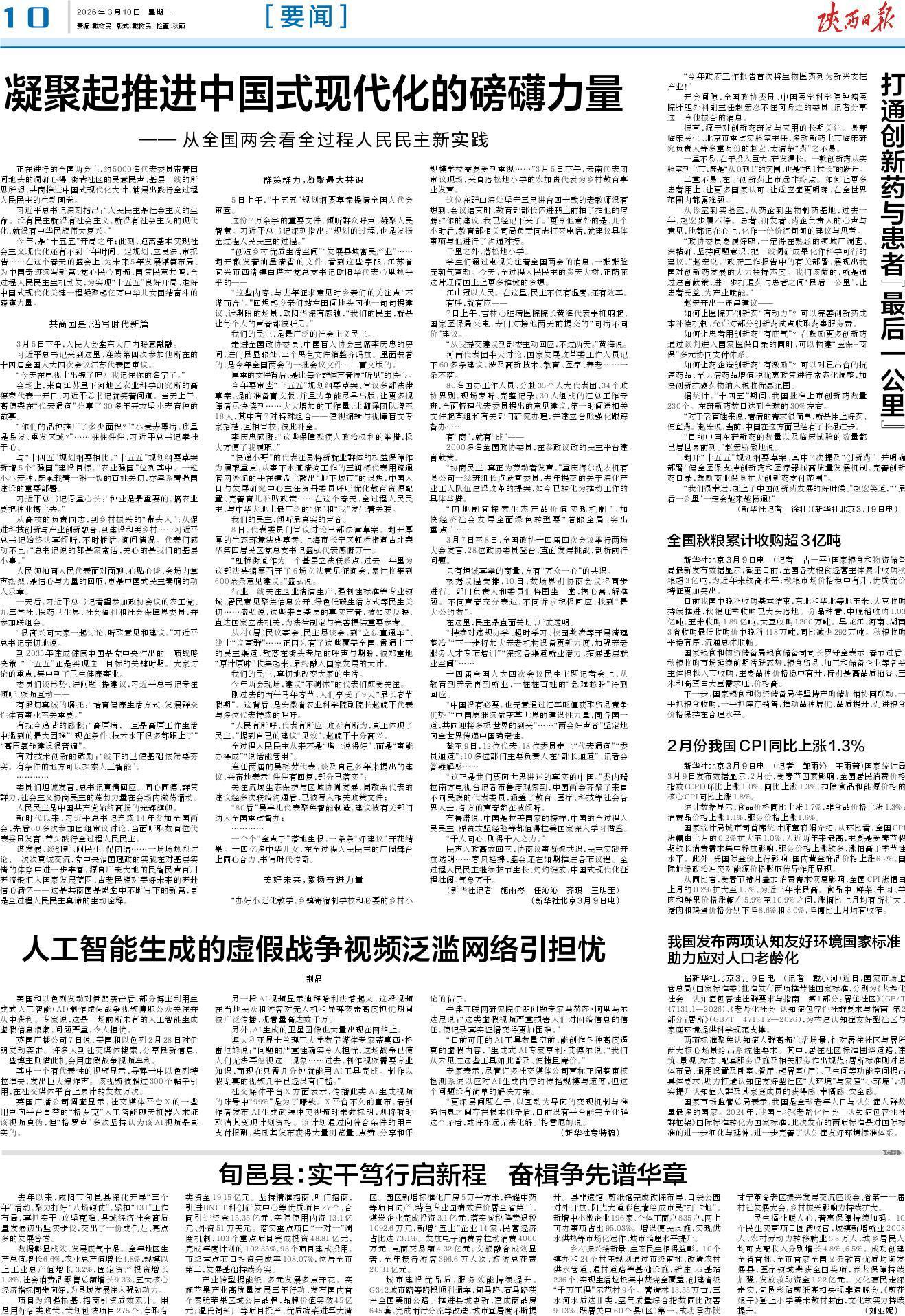 民生福祉暖人心,普惠保障持续加码。10个民生实事项目圆满收官,城镇新增就业2008人,农村劳动力转移就业5.8万人,城乡居民人均可支配收入分别增长4.8%、6.5%。成功创建全省首批、全市首家全国义务教育优质均衡发展县,医疗领域荣获全国奖项,养老保障持续加强,发放救助资金1.22亿元。文化惠民走深走实,旬邑彩贴剪纸亮相央视非遗晚会,《剪花娘子》登上小学美术教材封面,文化软实力持续提升。(刘亚妮)