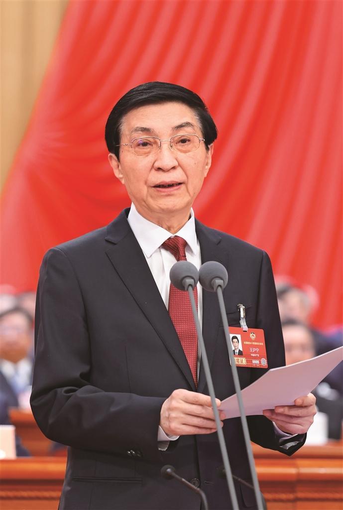 3月11日上午,中国人民政治协商会议第十四届全国委员会第四次会议在北京人民大会堂闭幕。全国政协主席王沪宁主持闭幕会并讲话。 新华社记者 黄敬文摄