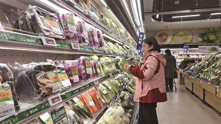 3月9日,市民在盒马鲜生西安大都荟店选购蔬菜。
