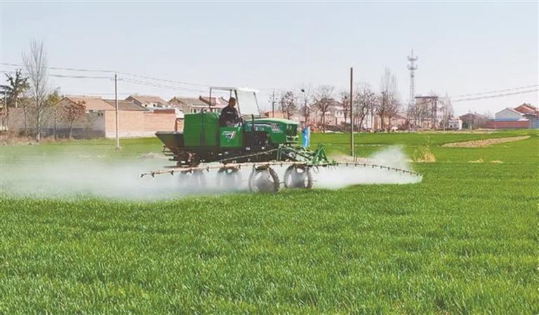 在周原镇亚子村,该村种粮大户赵晓亮操控无人机为麦田喷施叶面肥。“以前背着喷雾器进行人工追肥,费时费力,喷施还不均匀;如今用无人机撒肥效率高、喷施匀,控量精准,能让麦苗长势更好、返青更快。”赵晓亮说。