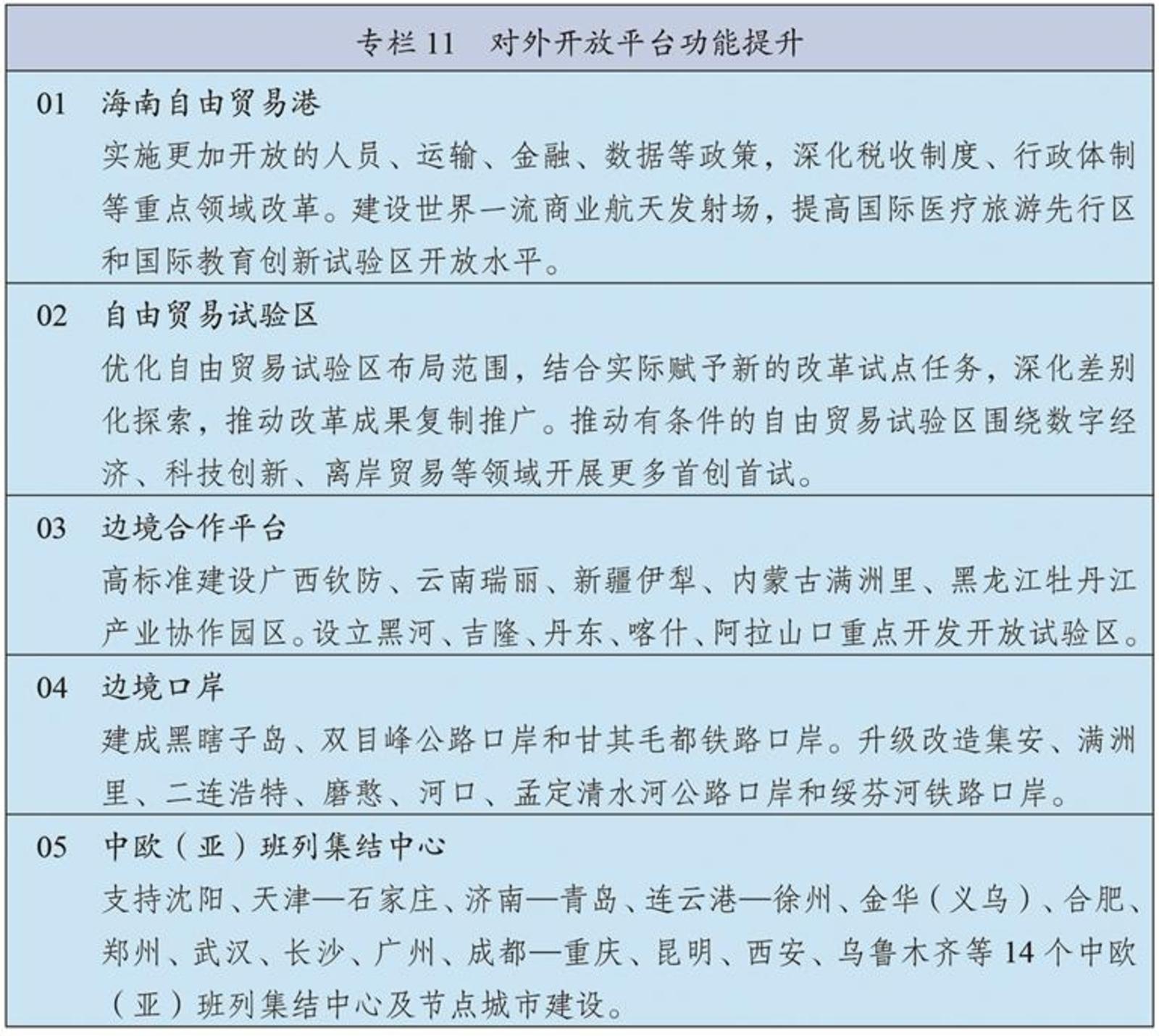 支持香港巩固提升国际金融、航运、贸易中心和国际航空枢纽地位,强化全球离岸人民币业务枢纽、国际资产及财富管理中心、国际风险管理中心功能,构建大宗商品交易生态圈和高增值供应链服务中心。支持香港建设国际创新科技中心,深化国际法律及解决争议服务中心、区域知识产权贸易中心、中外文化艺术交流中心建设,加快北部都会区建设。支持澳门经济适度多元发展,深化世界旅游休闲中心、中国与葡语国家商贸合作服务平台和以中华文化为主流、多元文化共存的交流合作基地建设,提升中医药大健康、特色金融、高新技术、会展商贸等产业竞争力。支持港澳打造国际高端人才集聚高地。
