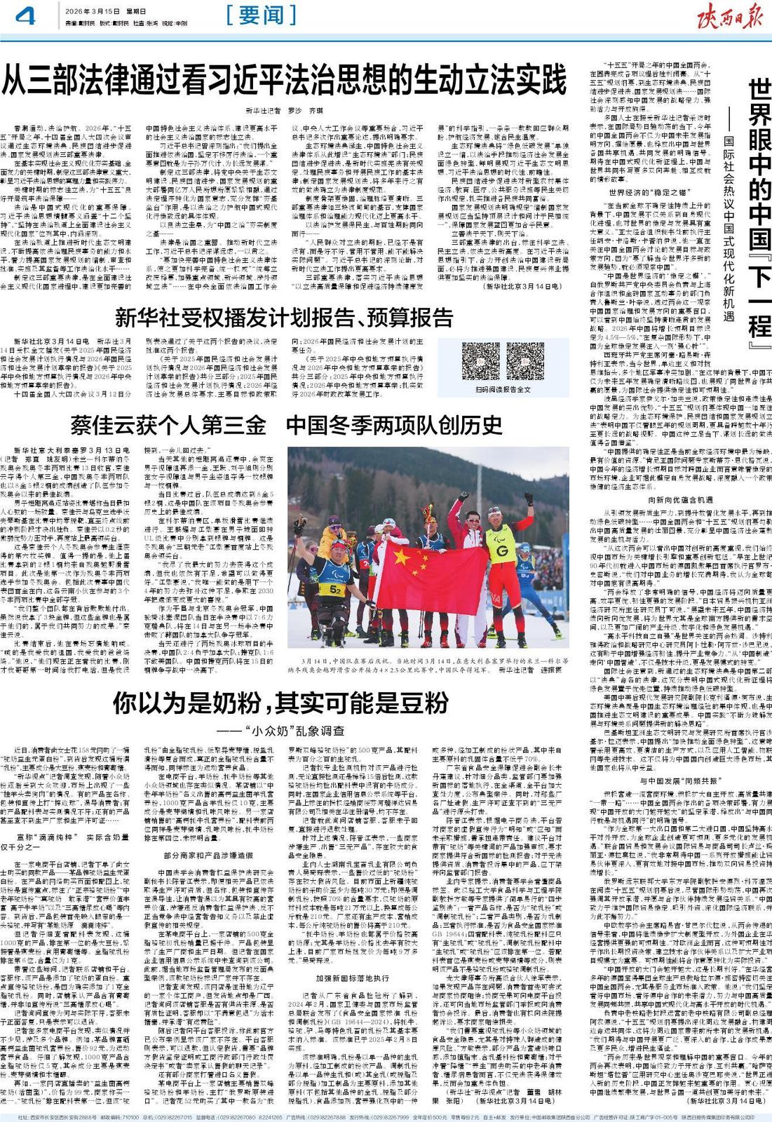新华社意大利泰塞罗3月13日电 (记者 郑直 姚友明)米兰—科尔蒂纳冬残奥会残奥冬季两项比赛13日收官,蔡佳云夺得个人第三金,中国残奥冬季两项队也以8金5银2铜的成绩创造了队伍参加冬残奥会以来的最佳战绩。