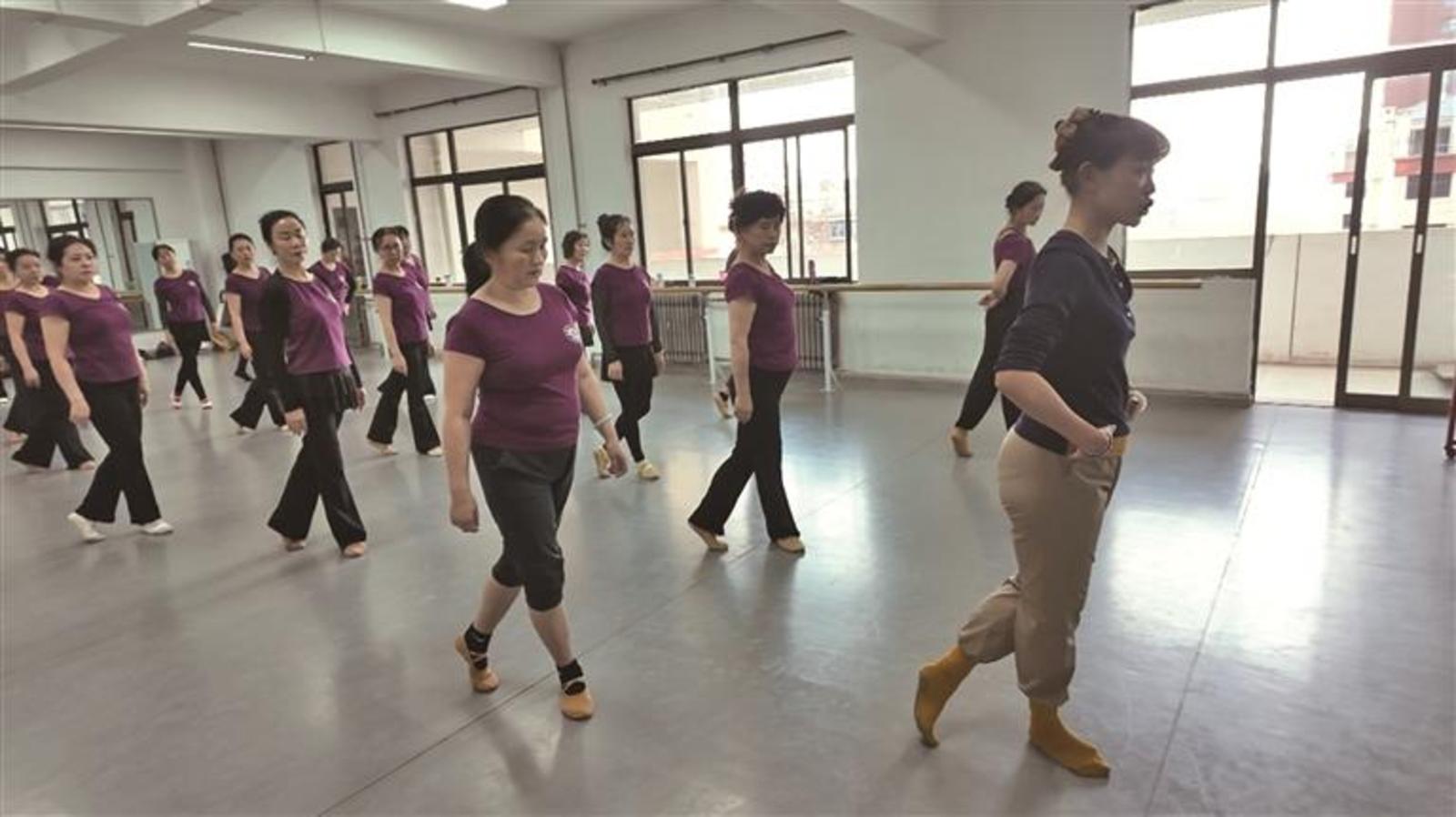 3月9日,西安老年大学舞蹈班学员在练习舞蹈。