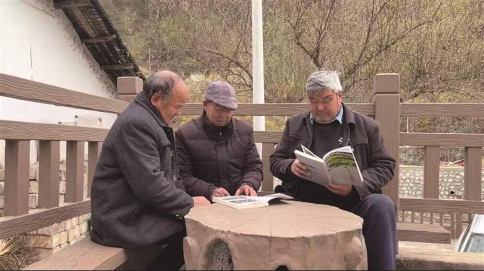 3月2日,佛坪县西岔河村的老人在阅读《讲述:我的村子西岔河》。 本报通讯员 庞欢摄