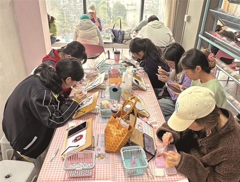 除此之外,拼豆、陶艺、DIY甜品等各类手作工坊也吸引着年轻人,享受“治愈之旅”。那些饱含心意的手作成品,连同演唱会等演出现场的热血瞬间,也成为一种“社交货币”,年轻人在互动中找到同好、收获认同。