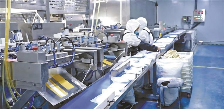 3月10日6时,晨曦微露,潼关县代字营镇南头村的潼关县潼食尚食品有限责任公司生产车间内,机器匀速运转,面食的香气弥漫。一条自动化生产线不停歇地产出金黄饱满的肉夹馍饼坯。这些饼坯经速冻封装后,被运往全国“老潼关肉夹馍”连锁门店,走向广阔的市场。