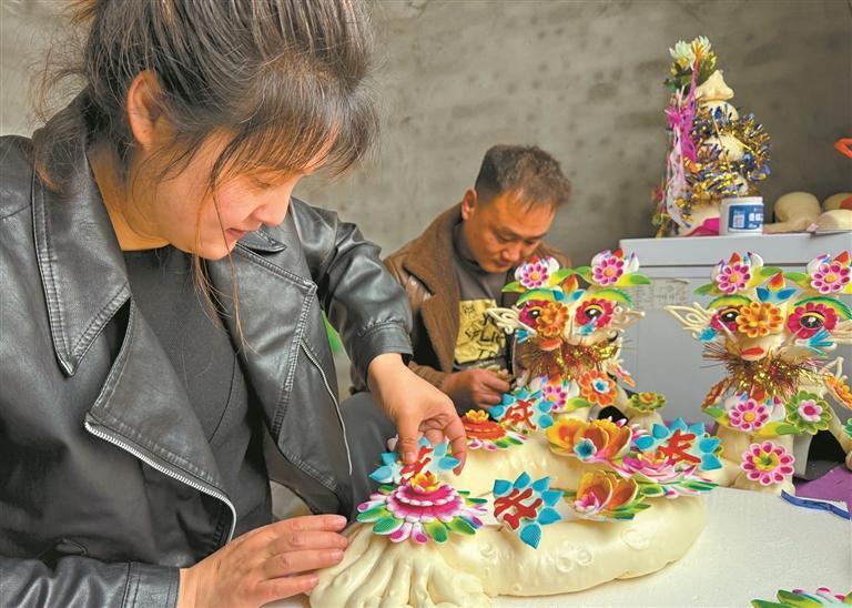 “靠着老祖宗传下来的手艺,再加上我们跟着市场需求琢磨创新,这门农家老手艺早就成了带动乡亲们增收、促进乡村振兴的支柱产业。全村靠做面花挣钱的村民约500名。”阿寿村党支部书记王麦良说。