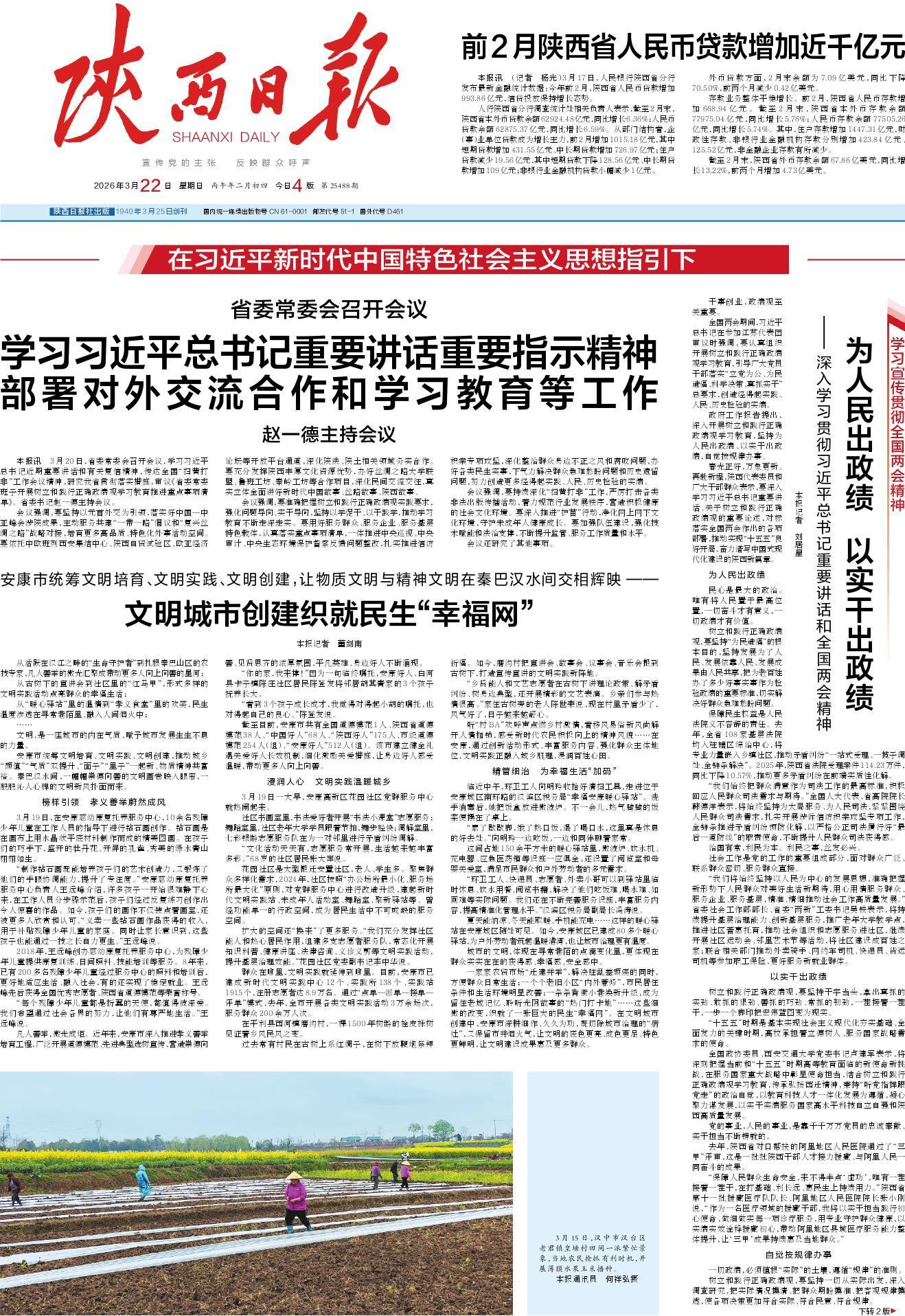 本报讯 (记者 杨光)3月17日,人民银行陕西省分行发布最新金融统计数据:今年前2月,陕西省人民币贷款增加993.86亿元,信贷投放保持增长态势。