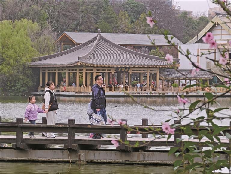 3月22日是第三十四届“世界水日”,也是第三十九届“中国水周”主题宣传活动启动日。在西安市曲江池遗址公园,游客出游,感受美好春天。 本报记者 许奥博摄