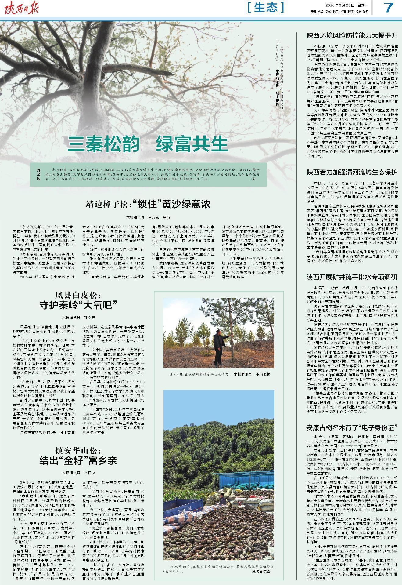 “今天的风有四五级,你往远处看,肉眼看不到沙尘,脸上也感觉不到有沙。搁在20年前,我们眼前就是漫天黄沙。”3月18日,在靖边县东坑镇樟子松林地,全国治沙英雄牛玉琴的接班人张立强,对笔者讲述着生态的巨变。