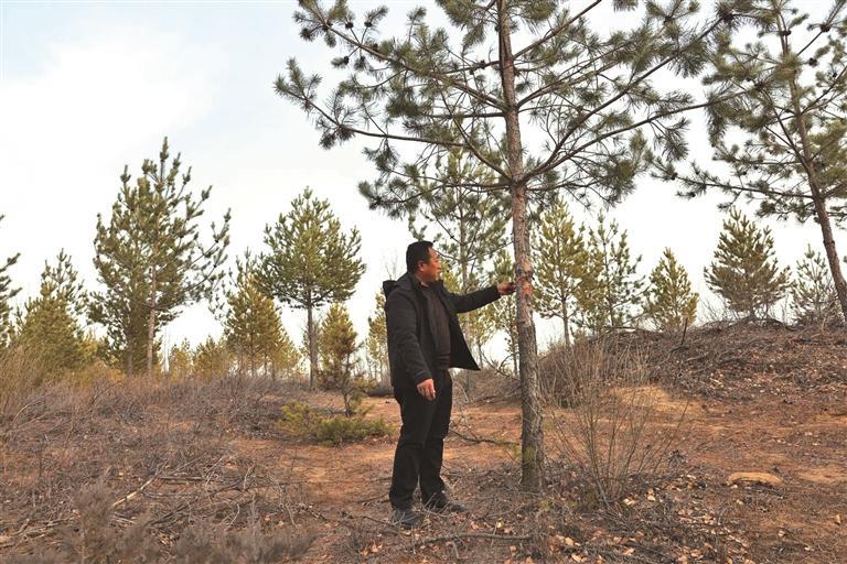 3月4日,张立强观察樟子松生长情况。 本报通讯员 王淑弘摄