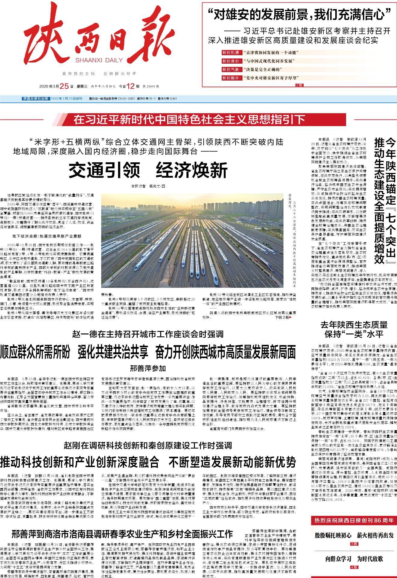 本报讯 (记者 刘居星)3月24日,省委副书记邢善萍到商洛市洛南县调研春季农业生产和乡村全面振兴工作,强调要深入学习贯彻习近平总书记关于“三农”工作的重要论述,全面落实全国两会精神,牢固树立和践行正确政绩观,毫不放松抓好春季农业生产,分类有序、片区化推进乡村振兴,为实现“十五五”良好开局提供有力支撑。