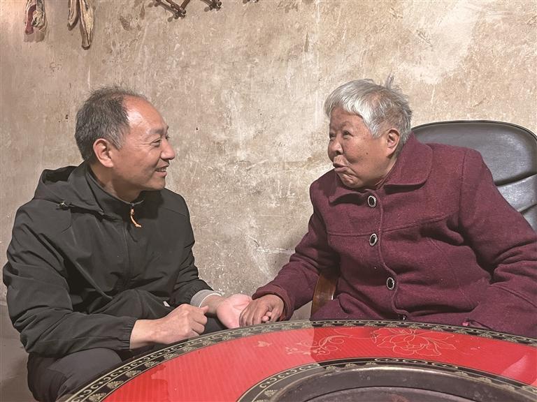 魏伟(左)采访教师李玉芳(资料照片)。 本报记者 段承甫摄