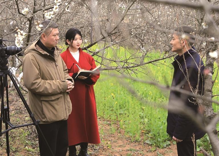 陶玉琼(中)在旬阳市采访(资料照片)。 本报记者 文超摄