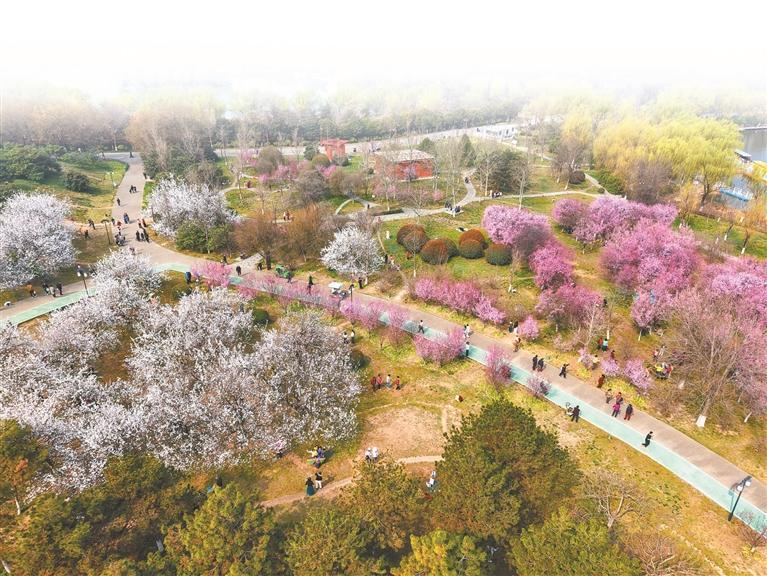 大明宫国家遗址公园内,梅花与杏花盛开(3月20日摄)。本组照片均由本报记者 田若楠摄