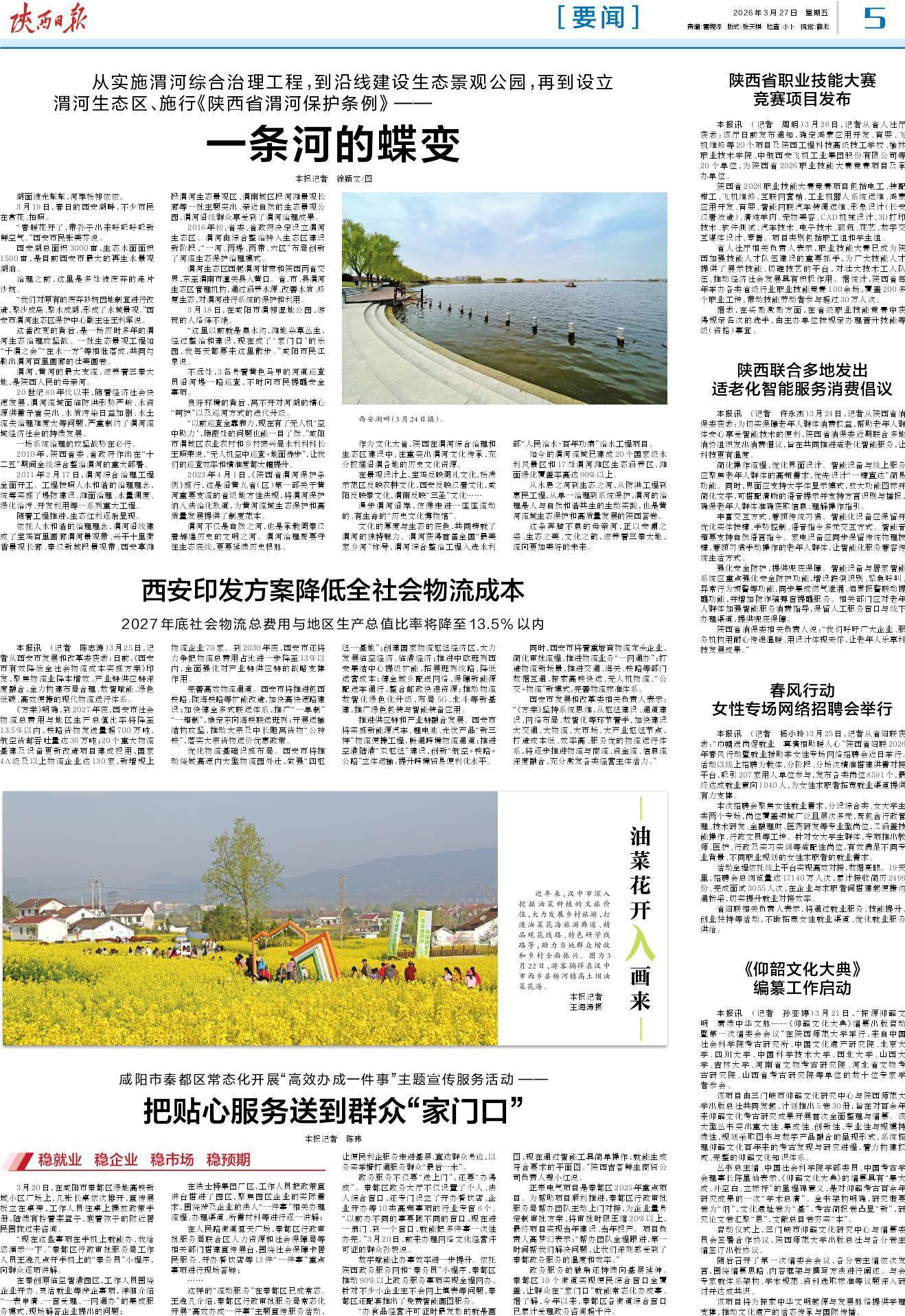 这番改变的背后,是一场历时多年的渭河生态治理攻坚战。一批生态景观工程如“千渭之会”“在水一方”等相继落成,共同勾勒出渭河百里画廊的壮美画卷。