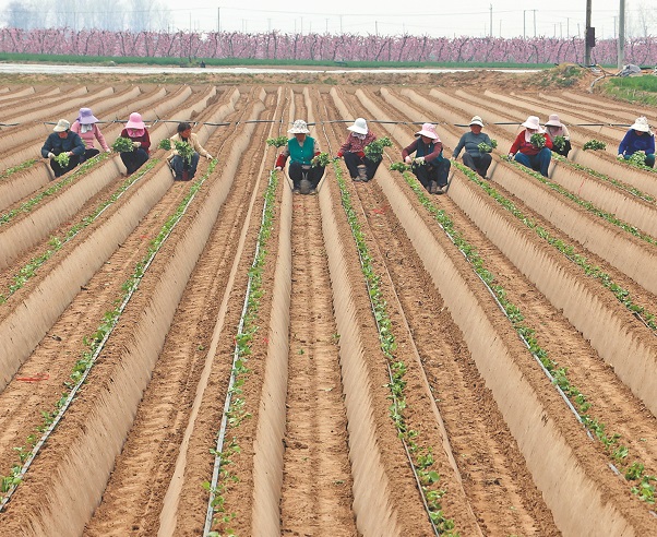 大荔县韦林镇的群众在栽种秦薯5号、济薯26等优质红薯苗(3月26日摄)。 本报通讯员 李世居摄