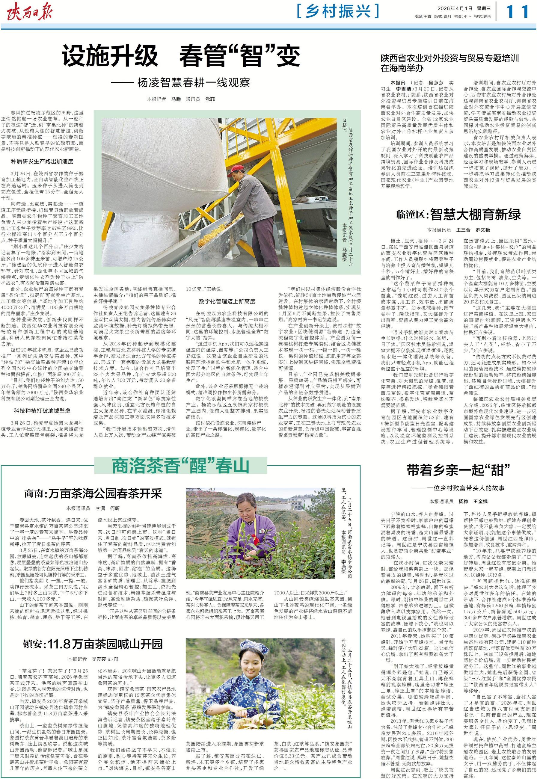 “正是这种从茶园到车间的全链条把控,让商南茶的卓越品质得以完美呈现。”商南县茶产业发展中心主任陈耀介绍,“今年气温适宜、光照充足、雨水充沛,茶树长势喜人。为保障春茶应采尽采,各家企业积极组织采茶工上岗。万亩茶海公园将迎来大面积采摘,预计每天用工1000人以上,日采鲜茶3000斤以上。”