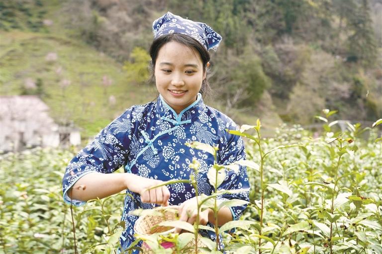 三月二十五日,在镇安县春茶开采喊山开园活动上,工人在象园村采茶。