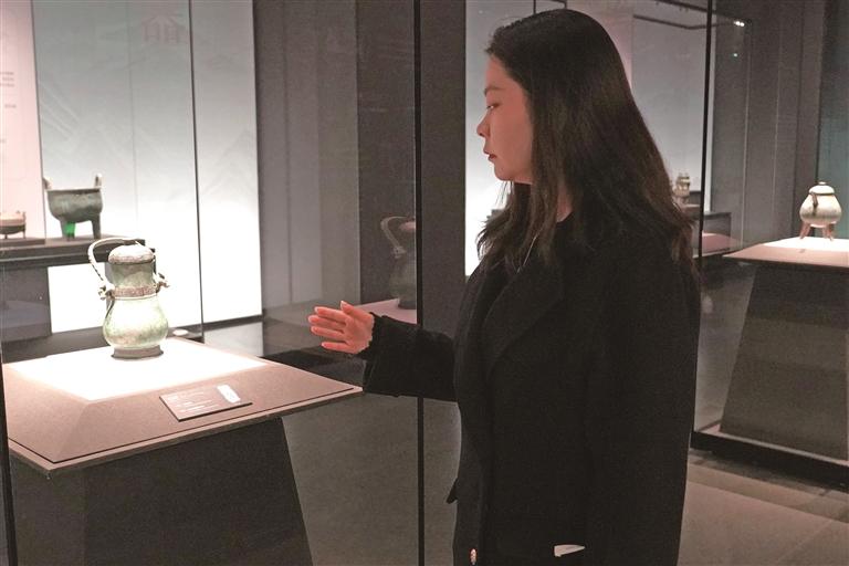 3月24日,麟游九成宫博物馆工作人员陈培培介绍父乙卣。
