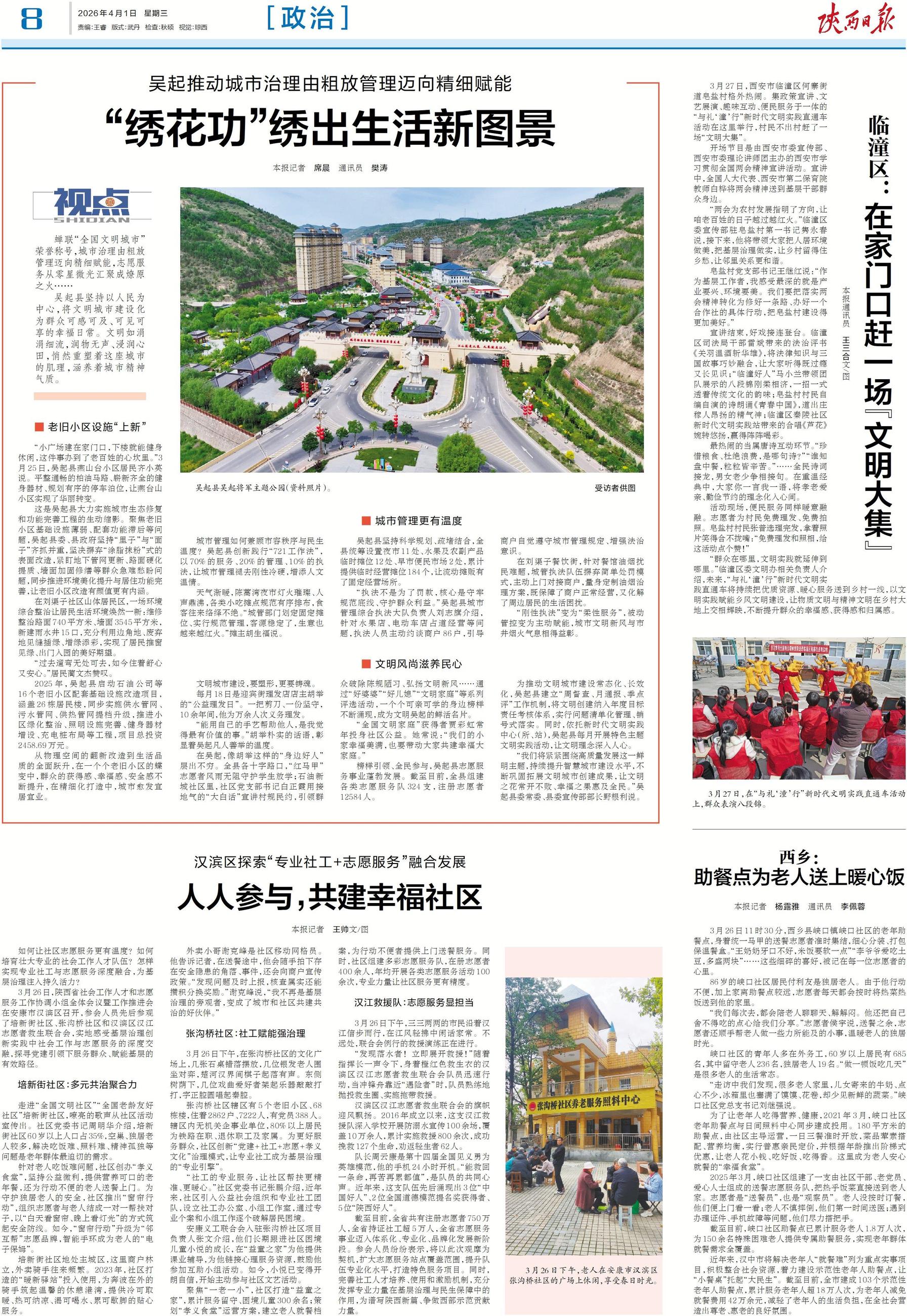 3月26日,陕西省社会工作人才和志愿服务工作协调小组全体会议暨工作推进会在安康市汉滨区召开,参会人员先后参观了培新街社区、张沟桥社区和汉滨区汉江志愿者救生联合会,实地感受基层治理创新实践中社会工作与志愿服务的深度交融,探寻党建引领下服务群众、赋能基层的有效路径。