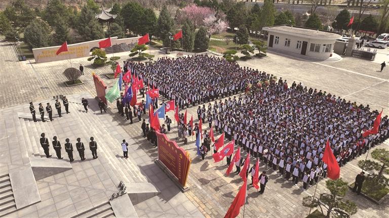 4月2日,宜川中学在瓦子街战役烈士陵园开展“青春励志行”百里远足红色研学活动。 本报通讯员 温浩浩摄